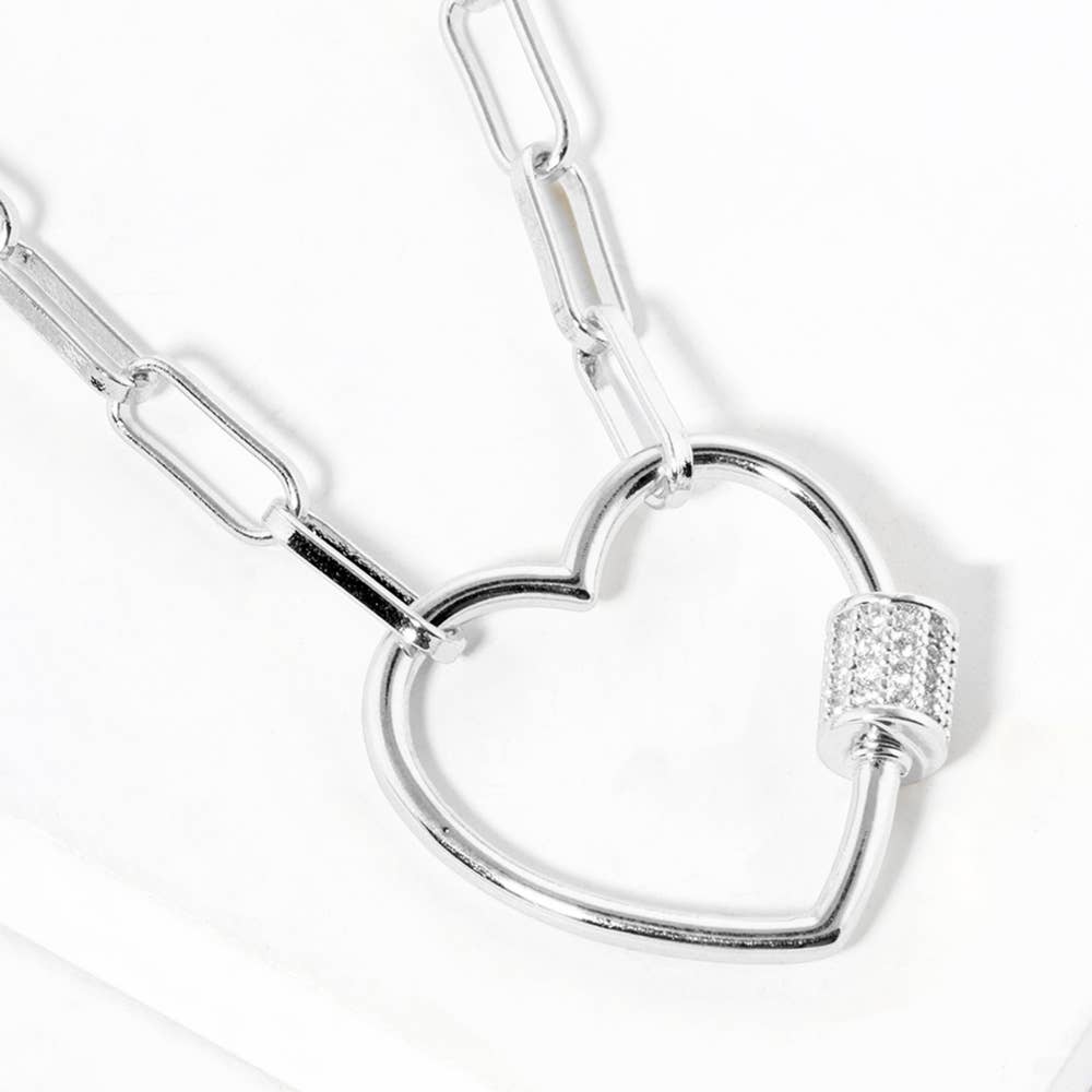 • Elegant paperclip chain necklace featuring a heart-shaped lock pendant with sparkling accents. A chic and versatile accessory that blends romance and modern design, perfect for layering or wearing solo.