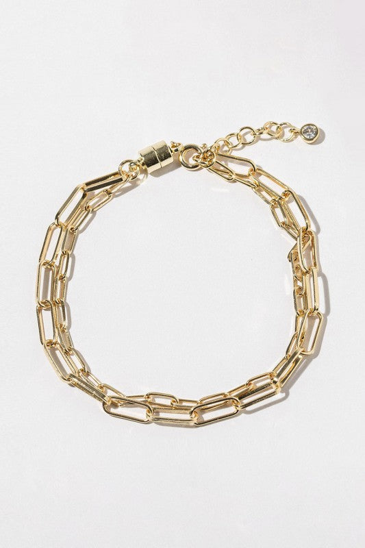Elevate your everyday look with this modern paperclip link bracelet featuring a secure magnetic clasp that makes it easy to put on and remove. Designed for effortless style, its sleek linked silhouette pairs perfectly with casual outfits or layered accessories for a chic and polished finish. Gold Dipped Lead and Nickel Compliant Made In Korea