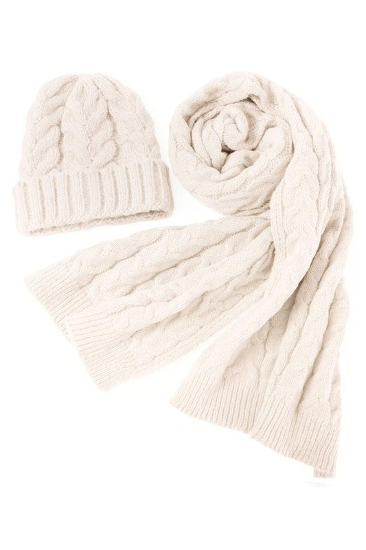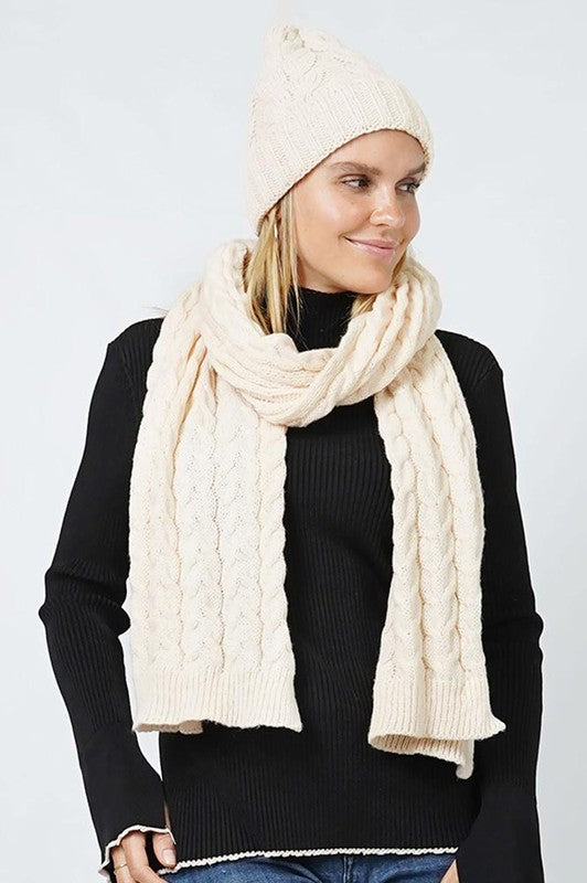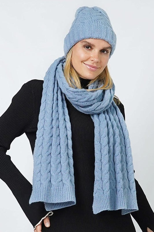 Scarf Size : 13" X 74.5" Hat Size : One Size Material : 100% Polyester Cable Knit Hat Scarf Set