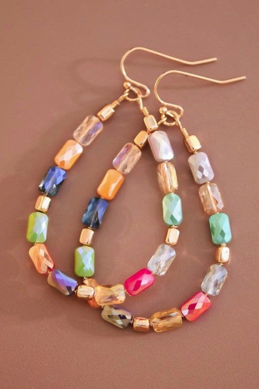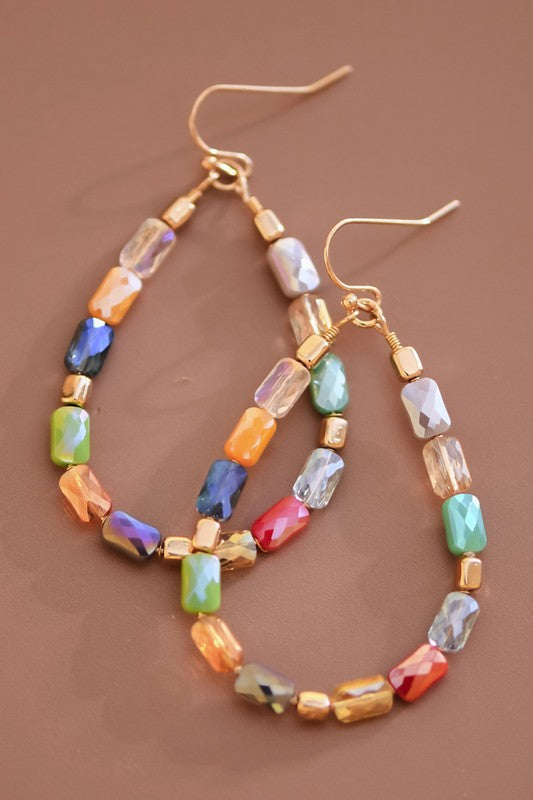 Approx. 1.3" x 2.3" Colorful Glass Crystal Earrings | Teardrop Dangle Earrings | Wire Beaded Earrings