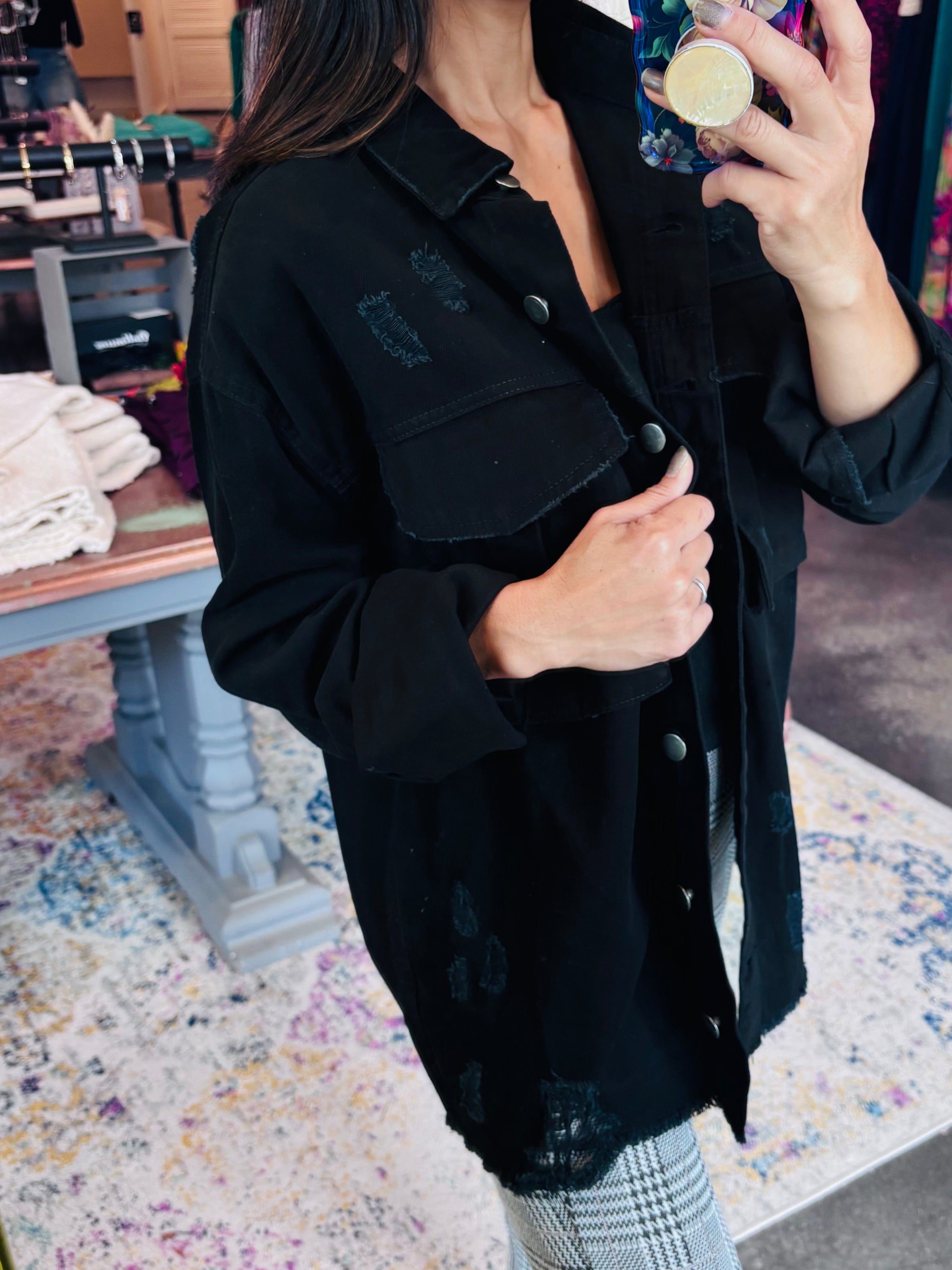 Cheer on your Eagles in style with this distressed black denim jacket with a relaxed fit and is slightly oversized. Embellished with a large Philadelphia Eagles patch on the back, even Swoop with one!