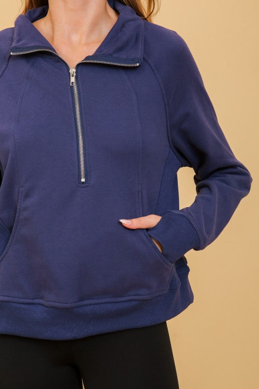 Upgrade your casual wardrobe with our chic pullover sweatshirt! This beauty features a stand-up collar and a stylish half-zip closure for adjustable comfort. The long sleeves with ribbed cuffs and the relaxed fit make it perfect for layering, while the ribbed hem adds a touch of structure. Crafted from cozy fleece material, this sweatshirt is your go-to for staying warm and fashionable.