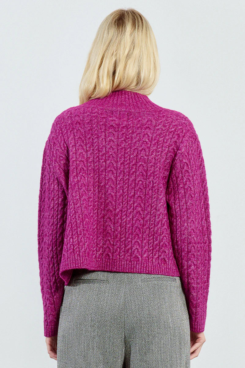 Layer up with effortless style in this cable-knit sweater that's anything but basic. The crisscross front detail adds visual intrigue while long sleeves and a semi-stand-up collar keep you cozy and put-together. Perfect for those days when you want texture, warmth, and a touch of personality all wrapped into one piece.