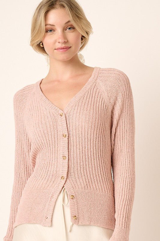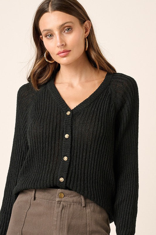 Effortless layering just got a glow-up. This lightweight V-neck cardigan is your new best friend—throw it over anything and instantly elevate your vibe. Perfect for those "just right" temperature moments, it moves with you without the bulk. Soft, versatile, and endlessly styleable, this piece bridges the gap between cozy and chic. Layer it, tie it, own it.