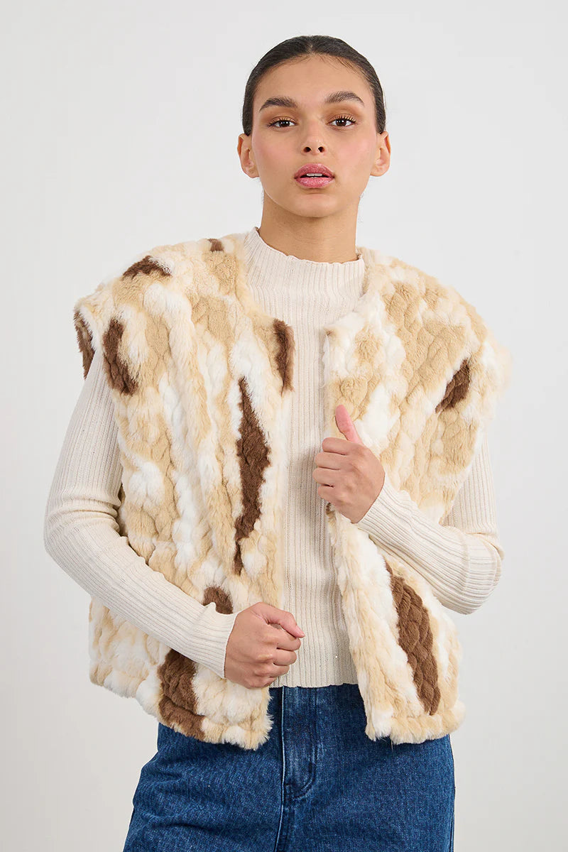 Elevate your evening look with this luxe mottled fur vest—the perfect layer for adding instant glamour to any outfit. Soft, textured fur in a sophisticated blend of tones drapes beautifully over dresses, blouses, or sweaters, giving you that effortlessly chic, dressed-up vibe. Whether you're heading to a special event or want to turn a casual ensemble into something show-stopping, this versatile piece is your new go-to for cozy elegance with serious style credentials.