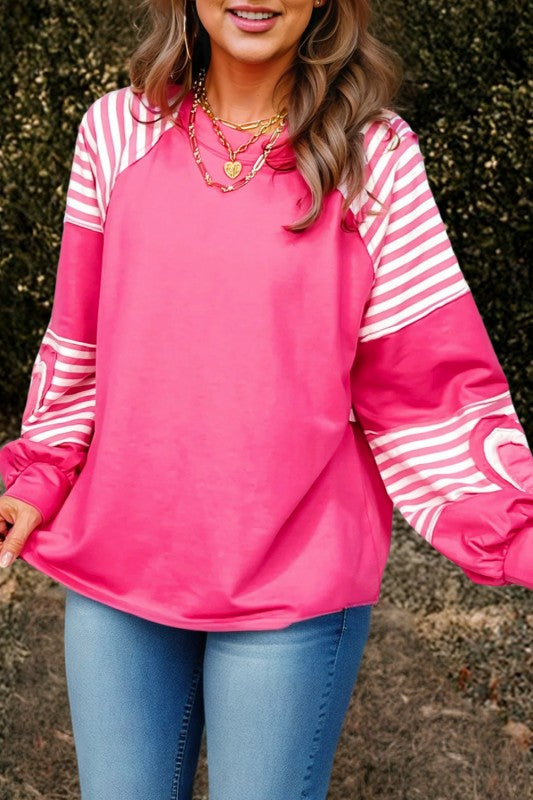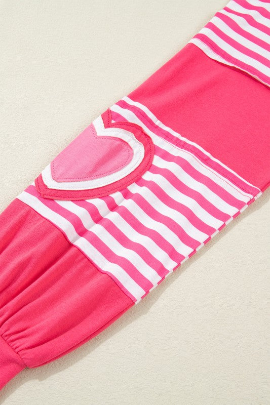 Oversized pillover with contrast trims and a cute heart-shaped striped patchwork for a playful look